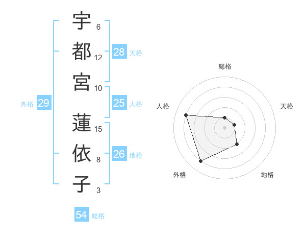 宇都宮 蓮依子さんを姓名の画数から五運を鑑定
