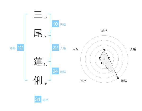 三尾 蓮俐さんを姓名の画数から五運を鑑定