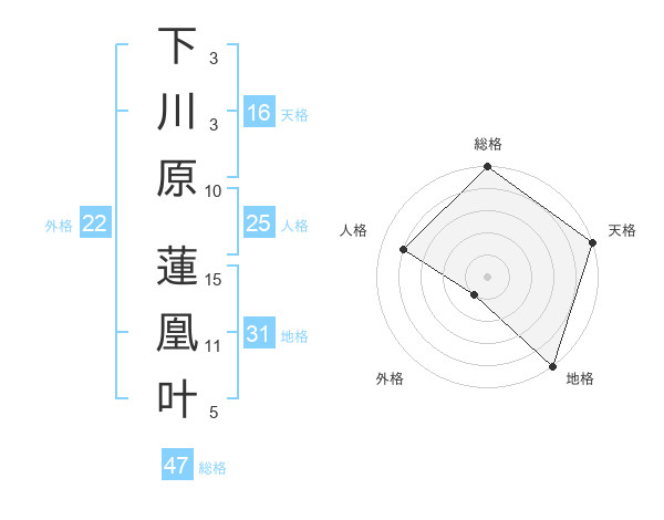 下川原 蓮凰叶さんの総格は47画の5点!