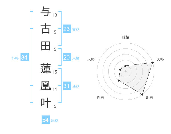 与古田 蓮凰叶さんの天格は23画の5点!