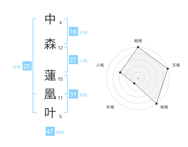 中森 蓮凰叶さんを姓名の画数から五運を鑑定