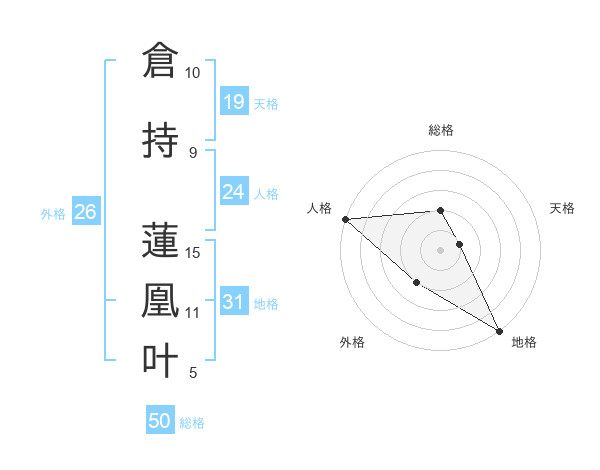 倉持 蓮凰叶さんの総格は50画の2点!