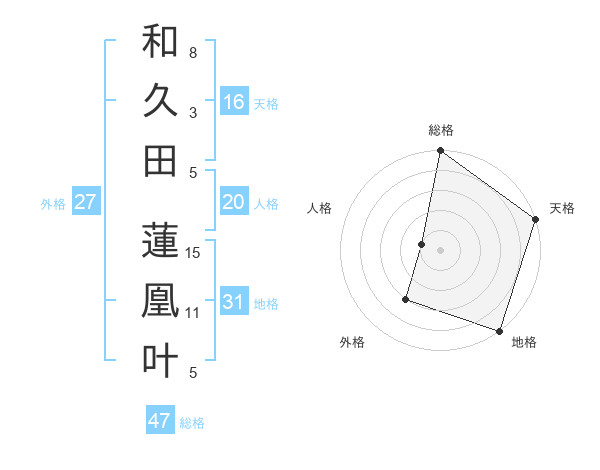 和久田 蓮凰叶さんを姓名の画数から五運を鑑定
