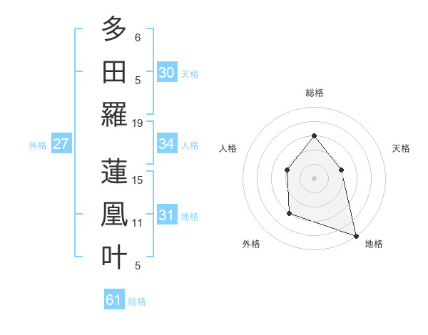 多田羅 蓮凰叶さんの総格は61画の3点!