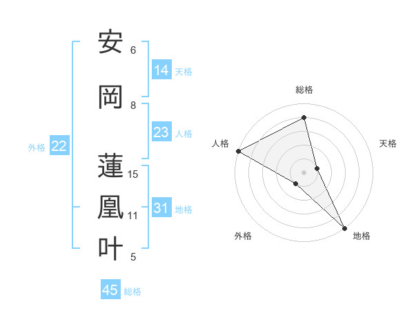 安岡 蓮凰叶さんを姓名の画数から五運を鑑定