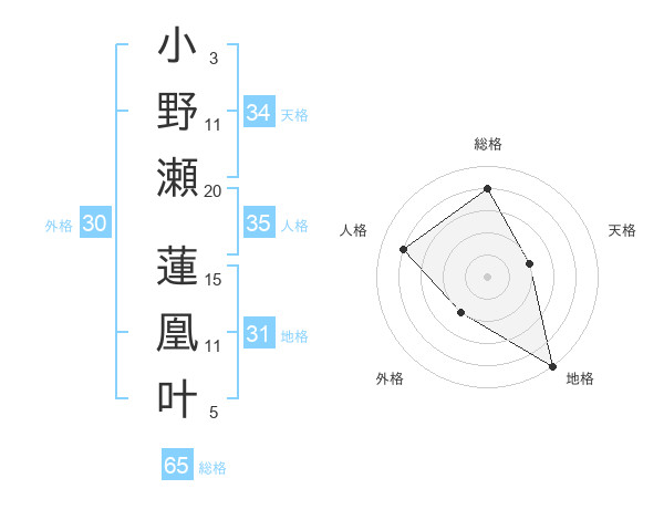 小野瀬 蓮凰叶さんの総格は65画の4点!