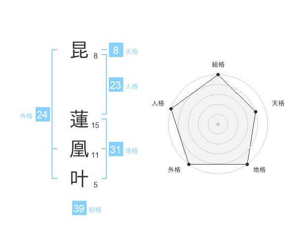 昆 蓮凰叶さんの外格は24画の5点!