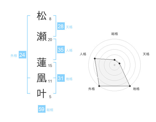 松瀬 蓮凰叶さんの外格は24画の5点!