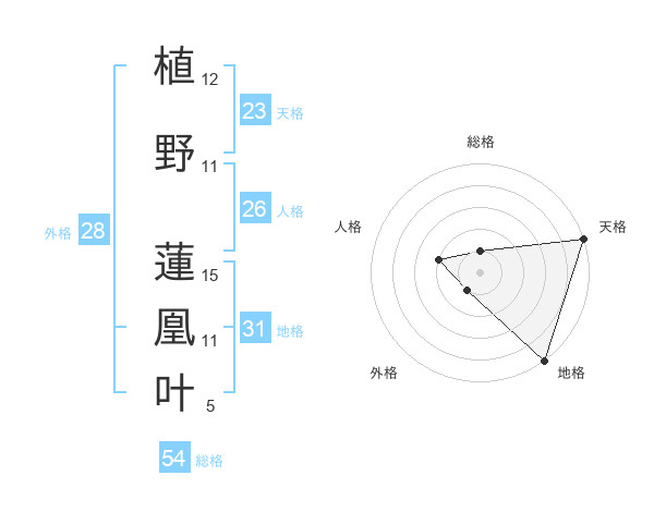 植野 蓮凰叶さんを姓名の画数から五運を鑑定