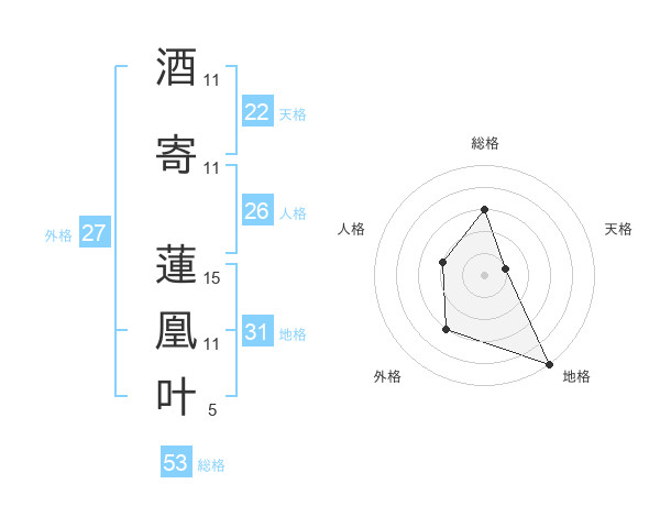 酒寄 蓮凰叶さんの総格は53画の3点!