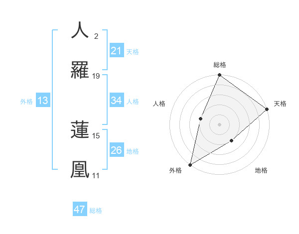 人羅 蓮凰さんの総格は47画の5点!