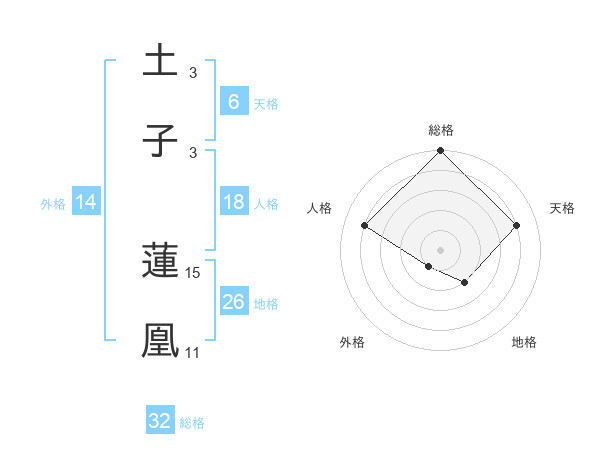 土子 蓮凰さんの総格は32画の5点!