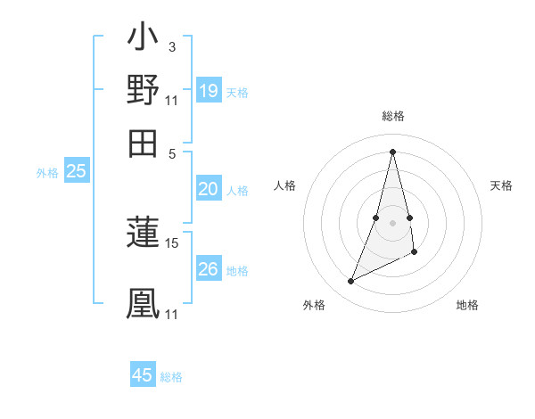 小野田 蓮凰さんを姓名の画数から五運を鑑定