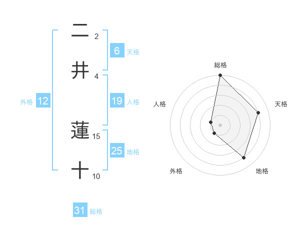 二井 蓮十さんを姓名の画数から五運を鑑定