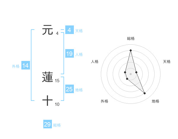 元 蓮十さんの総格は29画の4点!