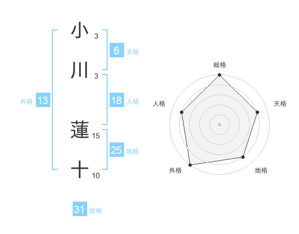 小川 蓮十さんを姓名の画数から五運を鑑定