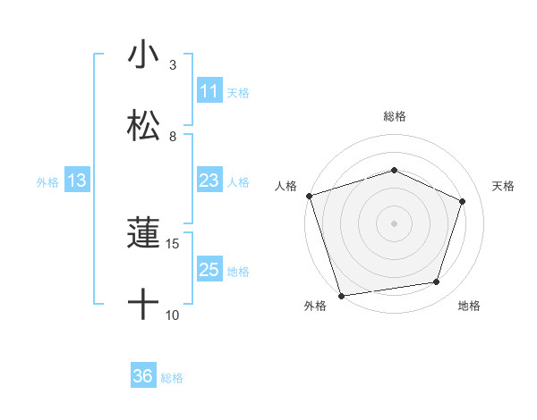 小松 蓮十さんの総格は36画の3点!