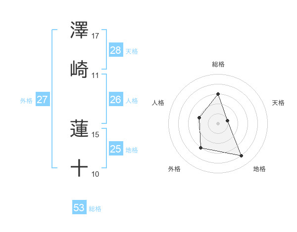 澤崎 蓮十さんの総格は53画の3点!