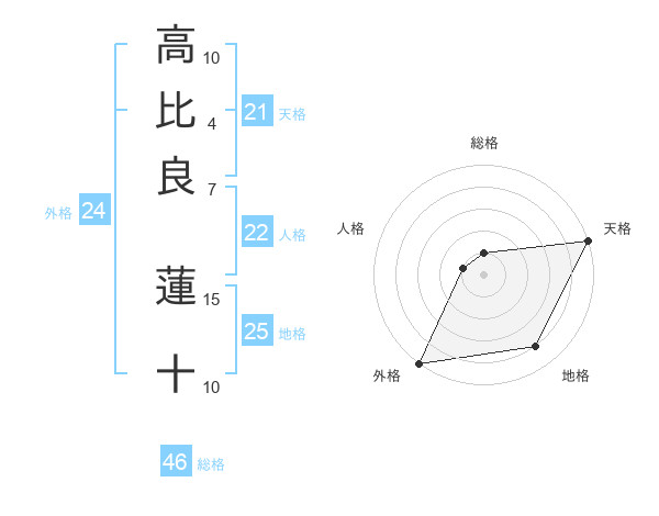 高比良 蓮十さんの天格は21画の5点!