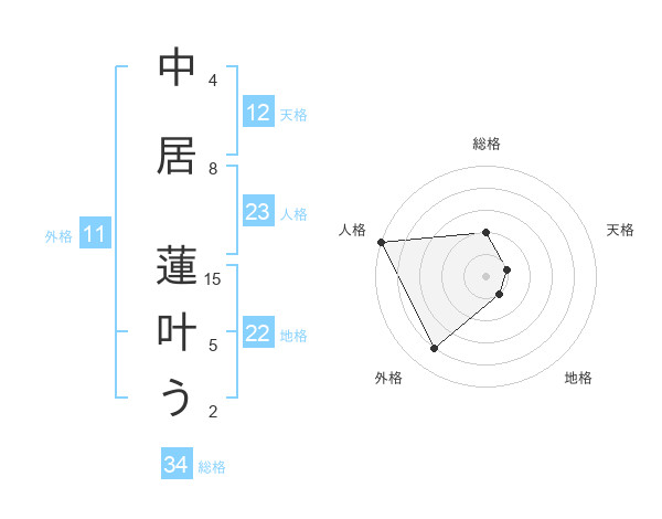 中居 蓮叶うさんを姓名の画数から五運を鑑定