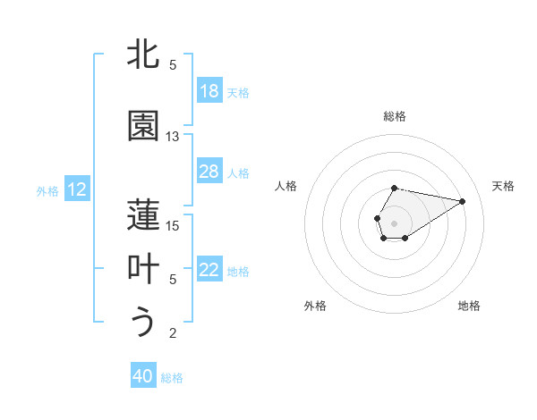 北園 蓮叶うさんを姓名の画数から五運を鑑定