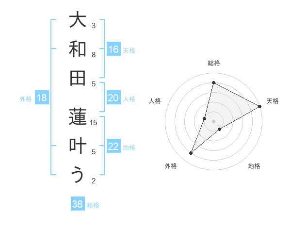 大和田 蓮叶うさんの総格は38画の4点