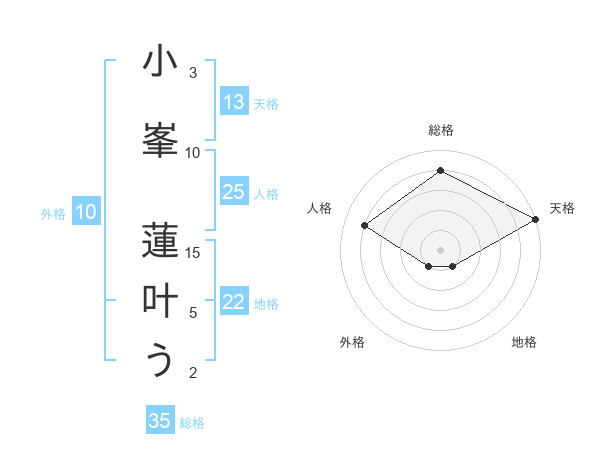小峯 蓮叶うさんの天格は13画の5点!