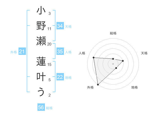 小野瀬 蓮叶うさんを姓名の画数から五運を鑑定