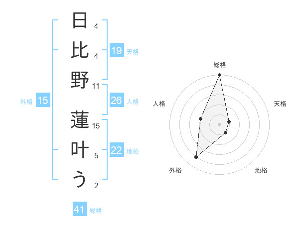 日比野 蓮叶うさんを姓名の画数から五運を鑑定