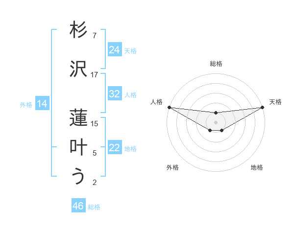 杉沢 蓮叶うさんを姓名の画数から五運を鑑定