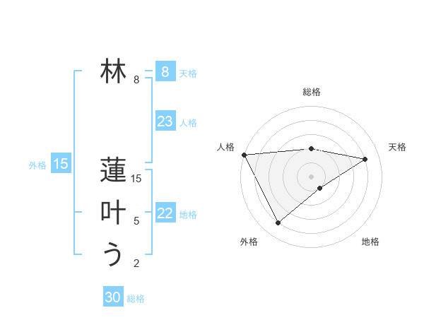林 蓮叶うさんを姓名の画数から五運を鑑定