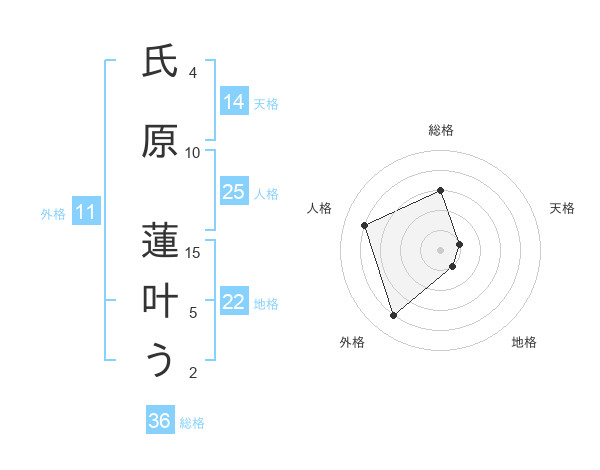 氏原 蓮叶うさんの外格は11画の4点!
