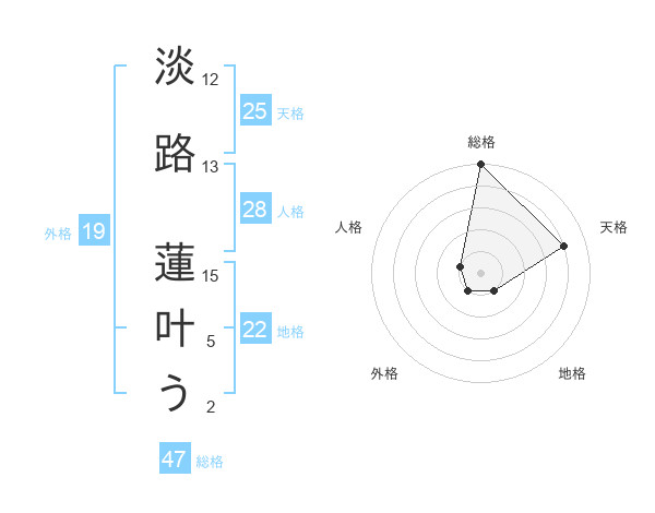 淡路 蓮叶うさんの総格は47画の5点!