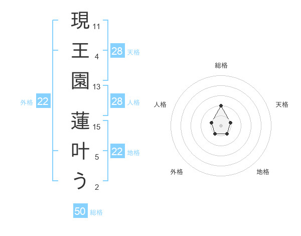 現王園 蓮叶うさんを姓名の画数から五運を鑑定