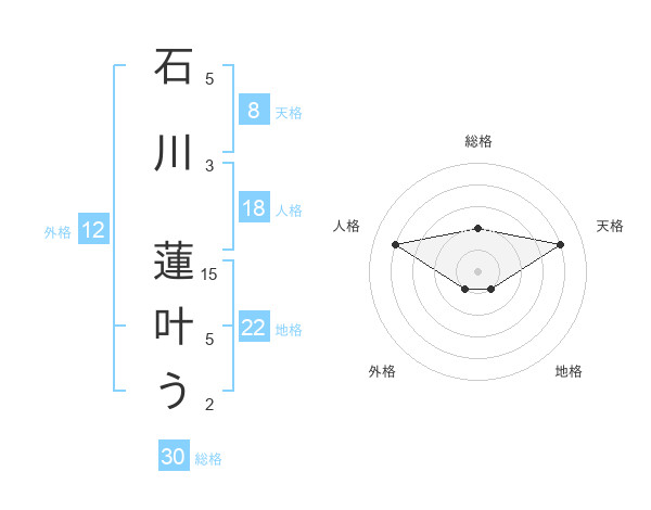 石川 蓮叶うさんを姓名の画数から五運を鑑定