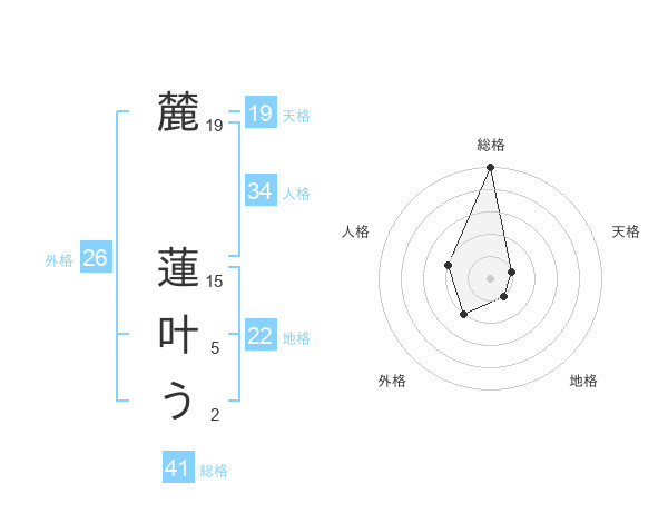 麓 蓮叶うさんの天格は19画の1点!