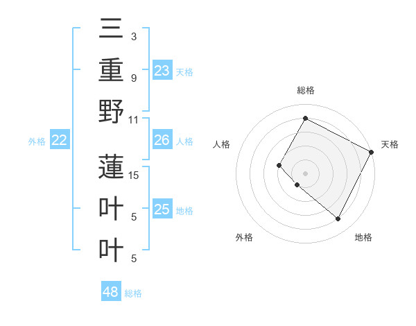 三重野 蓮叶叶さんを姓名の画数から五運を鑑定