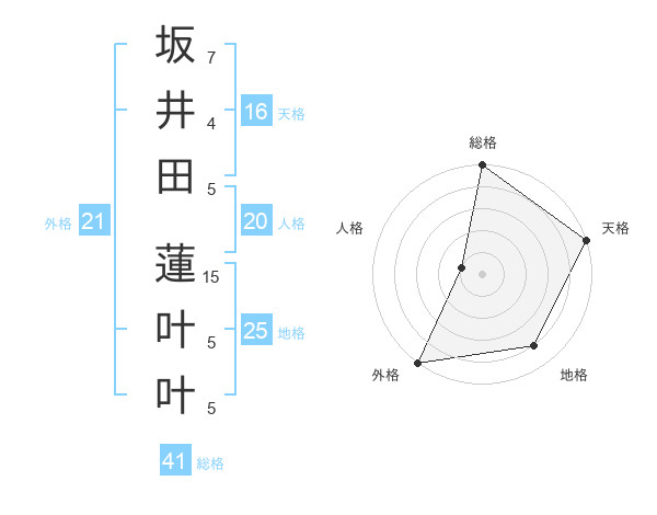 坂井田 蓮叶叶さんの総格は41画の5点!