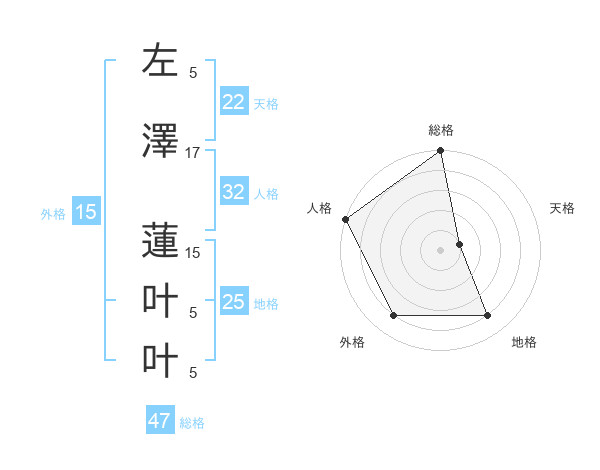 左澤 蓮叶叶さんを姓名の画数から五運を鑑定