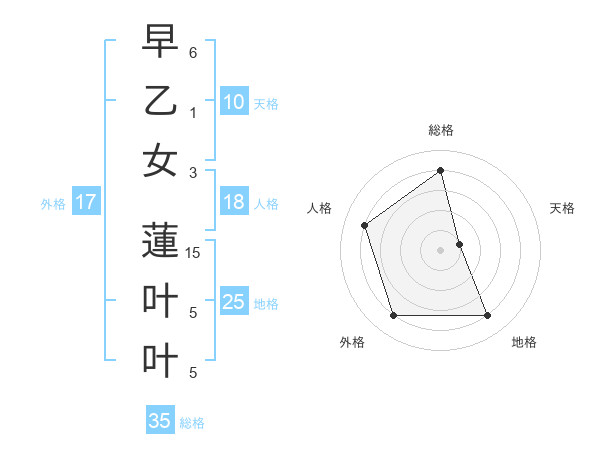 早乙女 蓮叶叶さんの総格は35画の4点!
