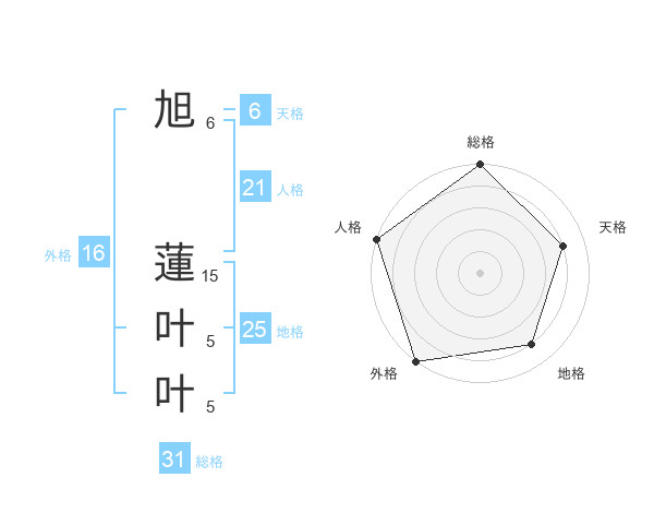 旭 蓮叶叶さんを姓名の画数から五運を鑑定