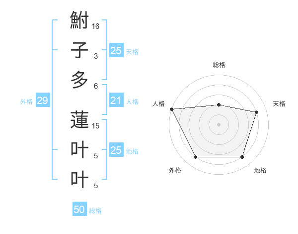 鮒子多 蓮叶叶さんの天格は25画の4点!