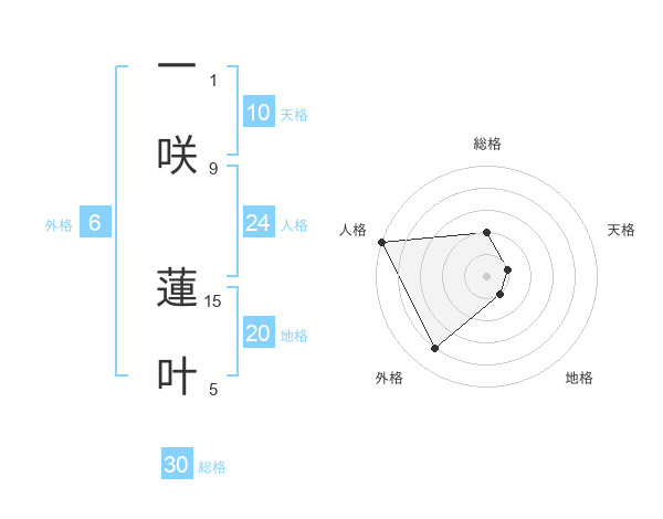 一咲 蓮叶さんの外格は6画の4点!