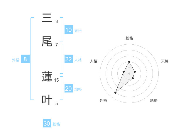 三尾 蓮叶さんを姓名の画数から五運を鑑定