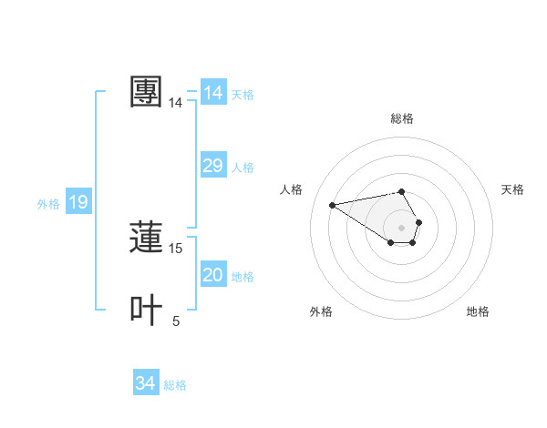 團 蓮叶さんの地格は20画の1点!