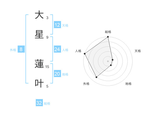 大星 蓮叶さんの総格は32画の5点!
