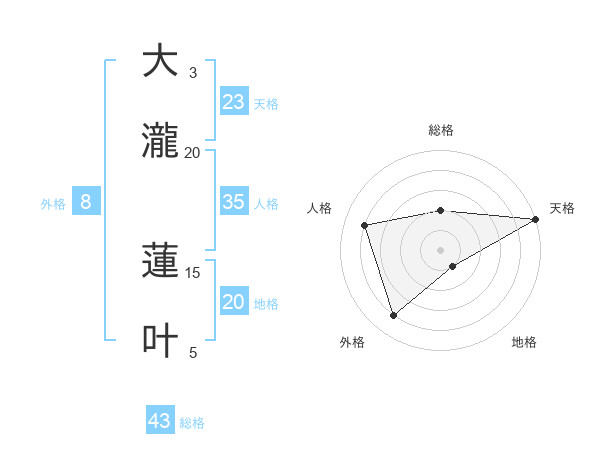 大瀧 蓮叶さんを姓名の画数から五運を鑑定