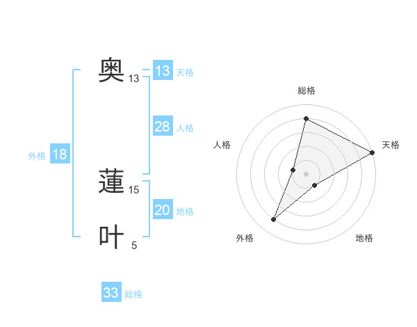 奥 蓮叶さんの天格は13画の5点!