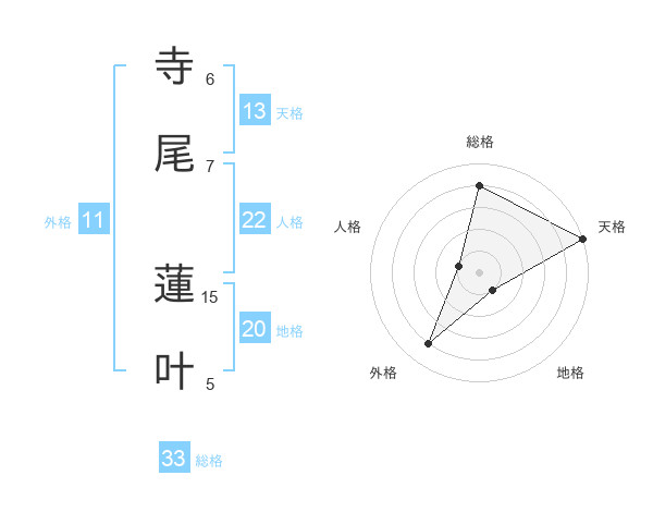 寺尾 蓮叶さんの天格は13画の5点!