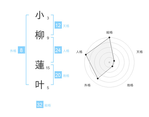 小柳 蓮叶さんを姓名の画数から五運を鑑定